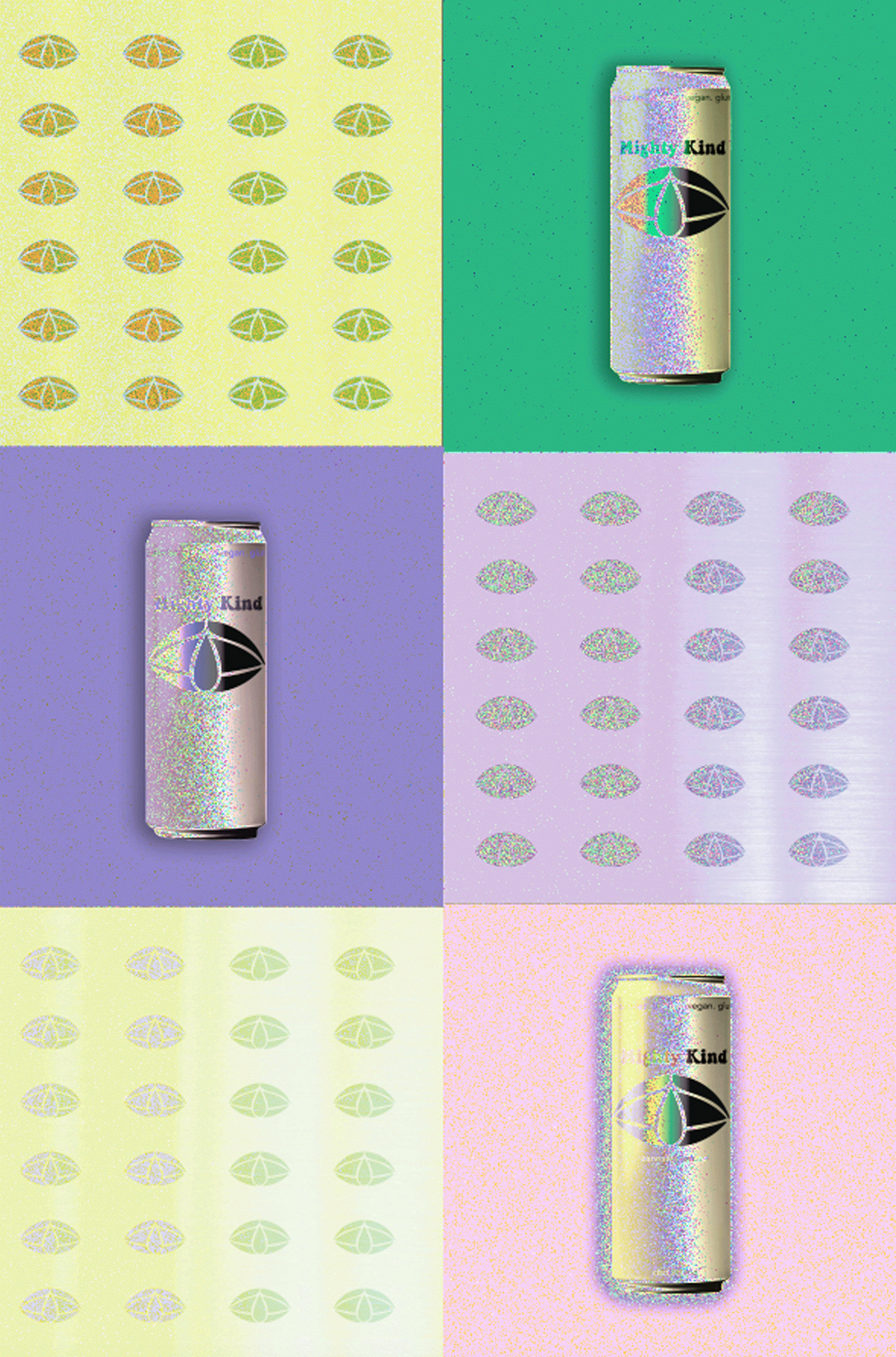 This project focused on creating a fresh and approachable brand identity for Mighty Kind, a CBD seltzer company. I designed a clean, modern logo inspired by natural forms to reflect the product’s wellness benefits and crafted a cohesive packaging system with a vibrant yet soothing color palette. The repeated patterns and subtle gradients enhance the brand's playful yet sophisticated feel, making it stand out on shelves. This branding strikes a balance between relaxation and energy, perfectly aligning with the product's purpose